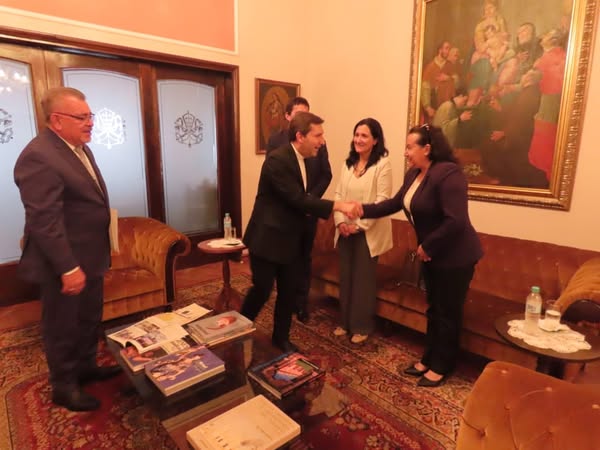 En representación de la comunidad de San Ignacio Misiones, la intendenta municipal, Licenciada Cristina Ayala, junto a la Directora de la Universidad Católica filial San Ignacio, Magíster Esperanza del Puerto de Benítez, y el Magistrado Doctor Camilo Javier Cantero Cabrera, Miembro del Comité Panamericano de Jueces y Juezas por los Derechos Sociales y la Doctrina Franciscana, participaron de una audiencia con el Nuncio Apostólico Mons. Vincenzo Turturro, representante de la Santa Sede ante el Gobierno paraguayo.
