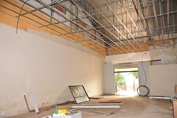 Desde esta semana personales de la empresa responsable procedieron a la Instalación de estructura desmontable con placa de aluminio en la parte interna del salón.