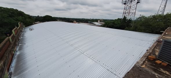 Este avance se tuvo luego de la conclusión total de la estructura del techo ( colocación de la chapa) del salón.