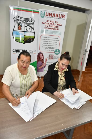 La municipalidad de San Ignacio Guazú, administración de la Lic. Cristina Ayala al concluir este año 20 25 concretó nuevamente la firma de convenio de cooperación interinstitucional con la Universidad Autónoma del Sur (Unasur).