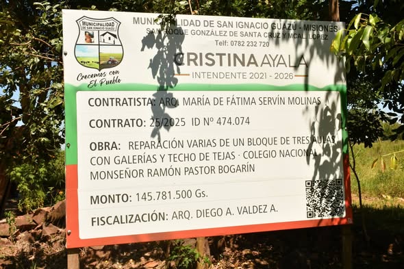 Se informa la ciudadanía y de manera muy especial a la comunidad educativa del Colegio Nacional Monseñor Ramón Bogarin que la obra consistente en REPARACIONES VARIAS DE UN BLOQUE DE TRES AULAS CON GALERIAS Y TECHO se encuentra en etapa culminatoria lo cual garantizará el aprendizaje de los jóvenes en este año lectivo 20 26.